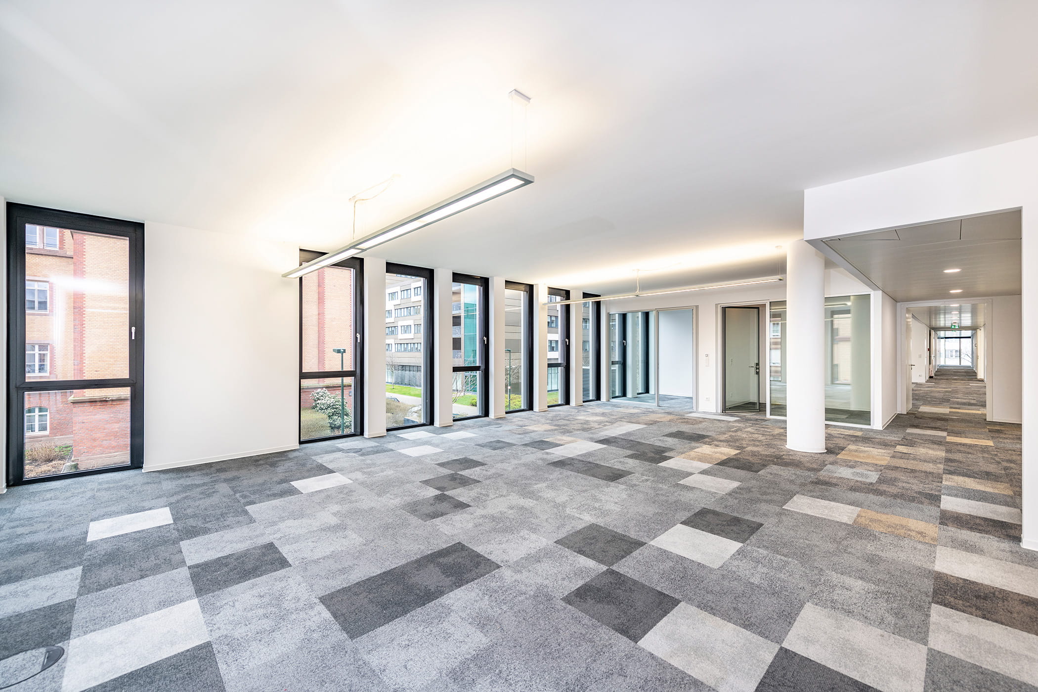 Die flexible Grundrissstruktur lässt alle erdenklichen Büroformen von Einzel- und Gruppenbüros über Kombizonen bis hin zu Open-Space-Flächen zu. Die kleinste mietbare Einheit in Clara beträgt etwa 150 m², die größte knapp 1.500 m².
